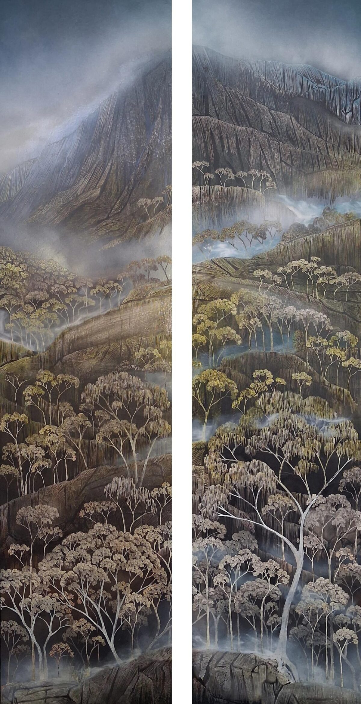ink, acrylic, soldering iron on board 122 x 60 cm (diptych)