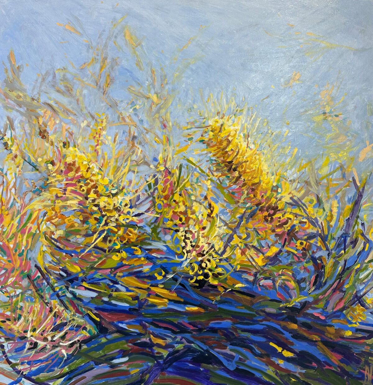 oil on birch panel framed in shadowline Tasmanian oak 70 x 65 cm